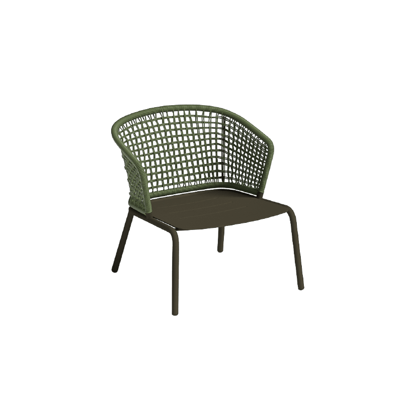 Frame: aluminium with Tiger powder coating woven rope + 1 seat cushion + 1 back cushion