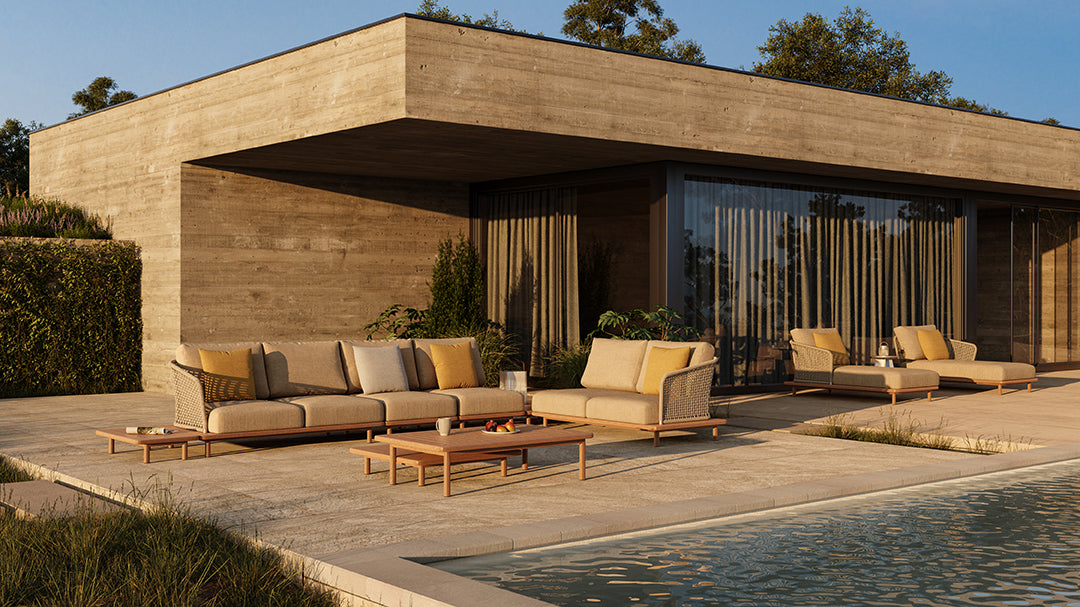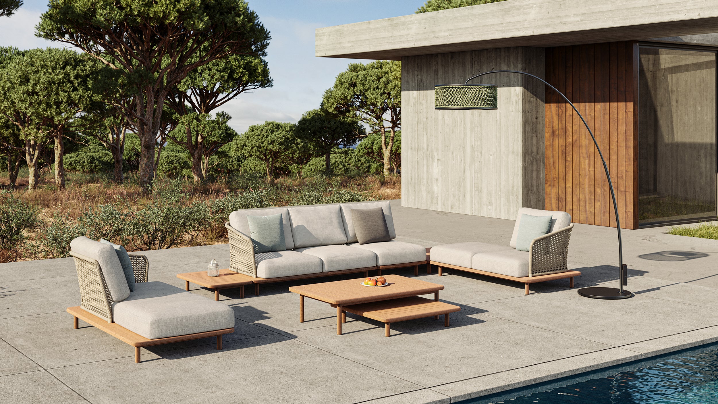 The refined Abrazo collection is renowned for its classic elegance and lightness. Characterised by organic lines and hand-woven, weather resistant rope detail, the softness of the robust seat and back cushions complement the strength and durability of the aluminium frame.