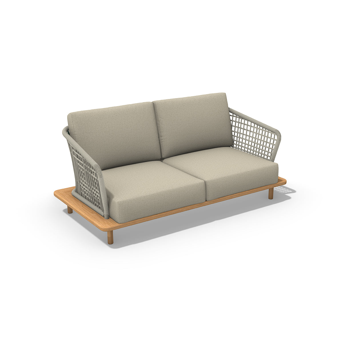 Frame: aluminium with Tiger powder coating. Backrest woven rope with teak base + 2 seat cushions + 2 back cushions