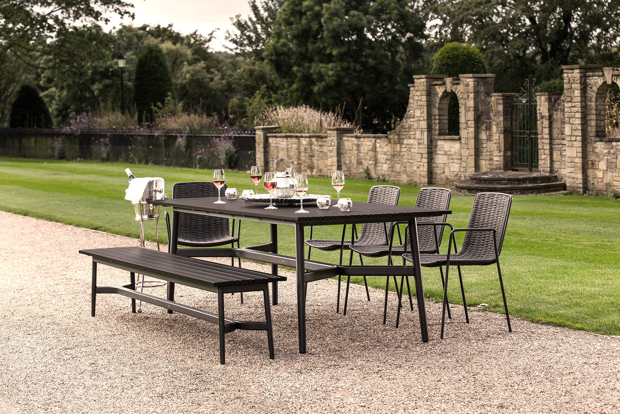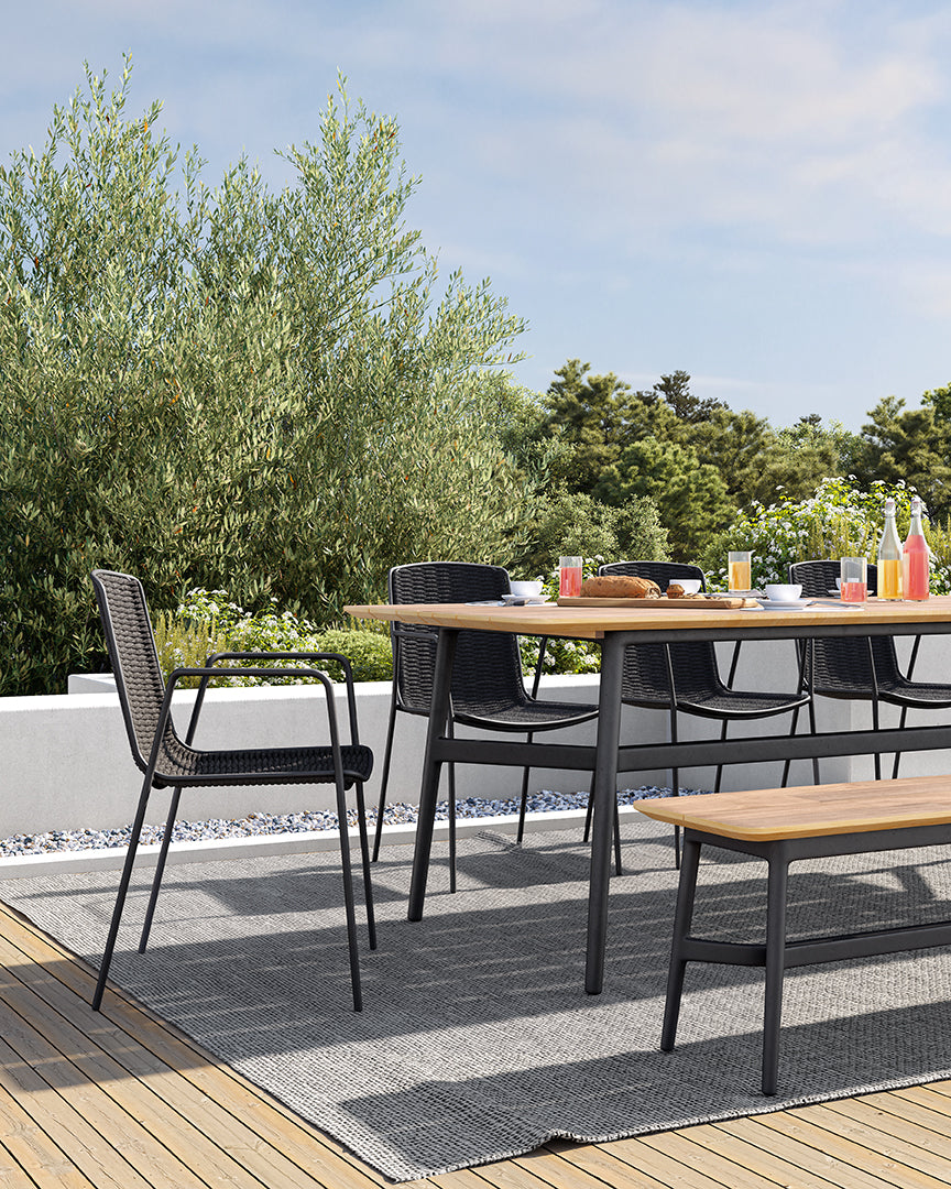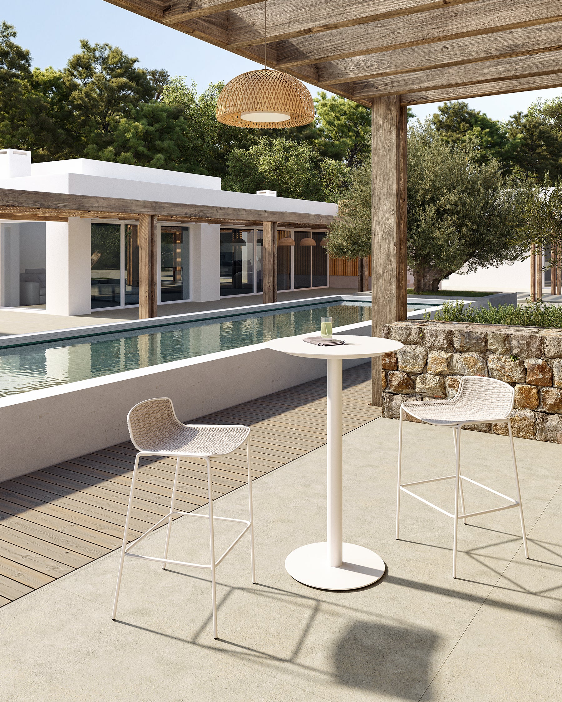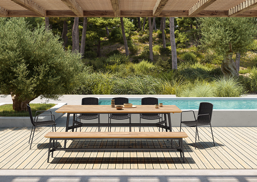 Bella is a comfortable and light outdoor collection that makes meetings even more pleasant. Thanks to its colors and geometry, it blends in with the environment. Its minimalist design doesn’t take away its resistance. The metal tube structure and the braiding of the seat provide great resistance, allowing their intensive use.