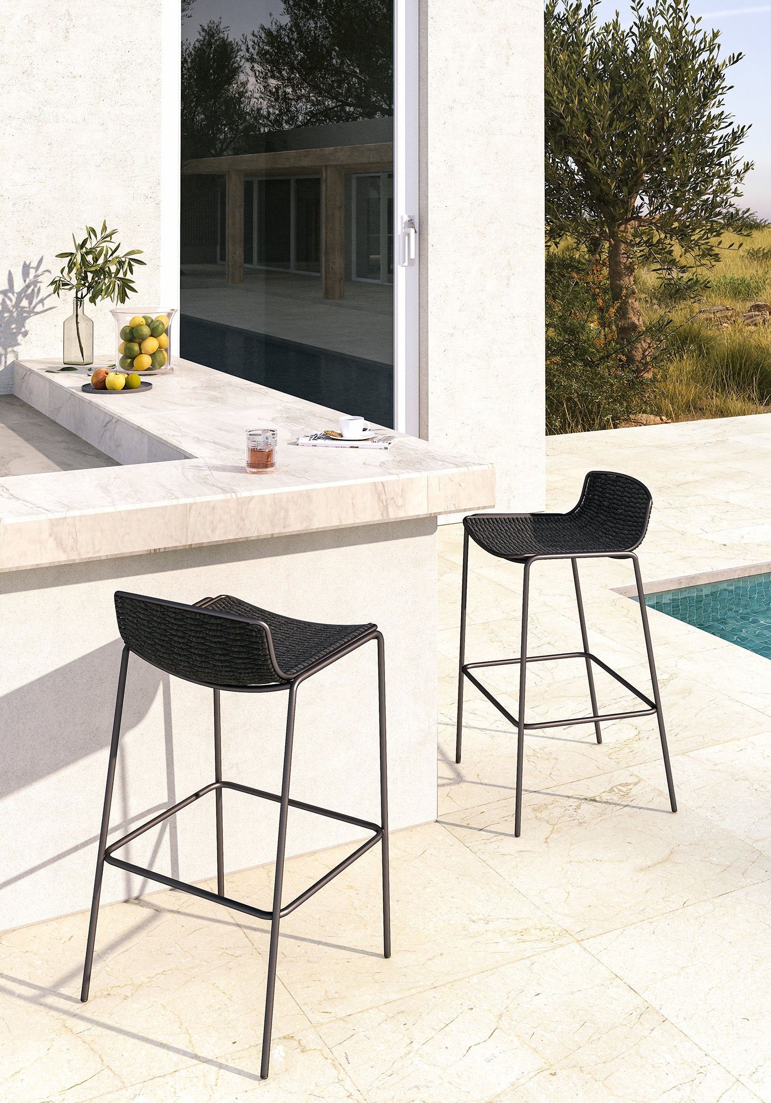 Bella is a comfortable and light outdoor collection that makes meetings even more pleasant. Thanks to its colors and geometry, it blends in with the environment. Its minimalist design doesn’t take away its resistance. The metal tube structure and the braiding of the seat provide great resistance, allowing their intensive use.
