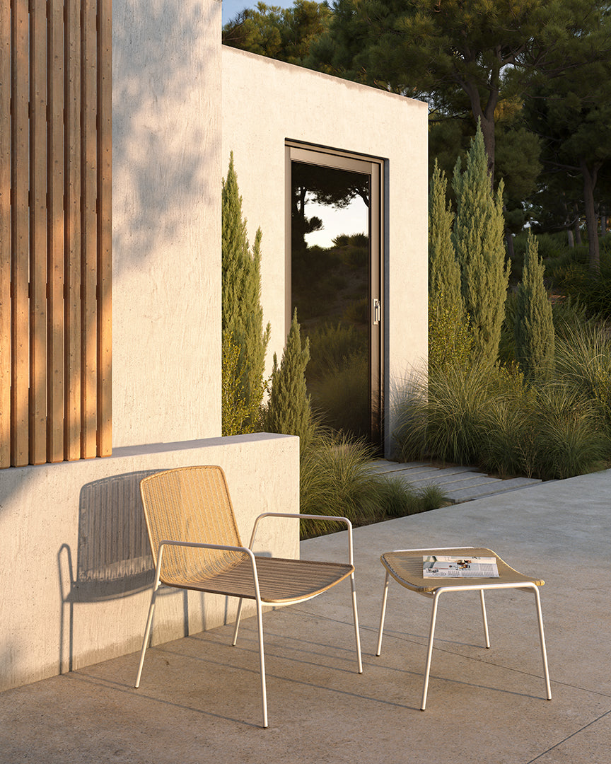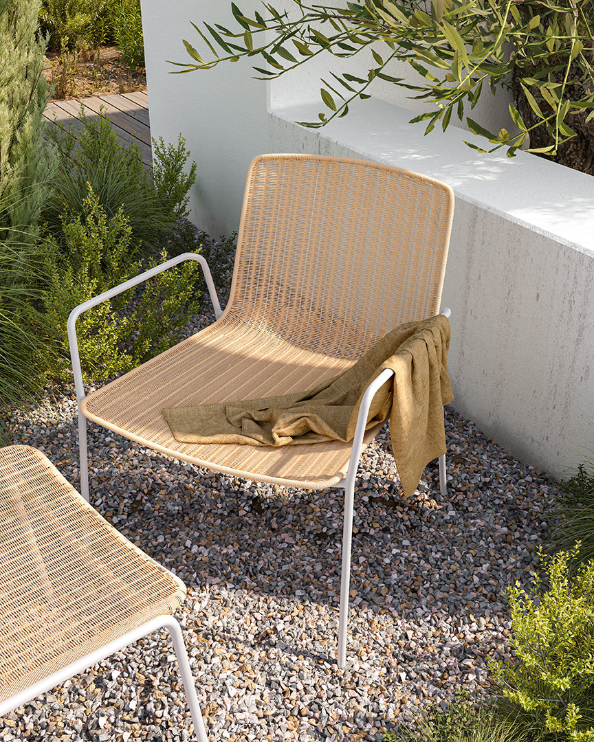 Bella is a comfortable and light outdoor collection that makes meetings even more pleasant. Thanks to its colors and geometry, it blends in with the environment. Its minimalist design doesn’t take away its resistance. The metal tube structure and the braiding of the seat provide great resistance, allowing their intensive use.
