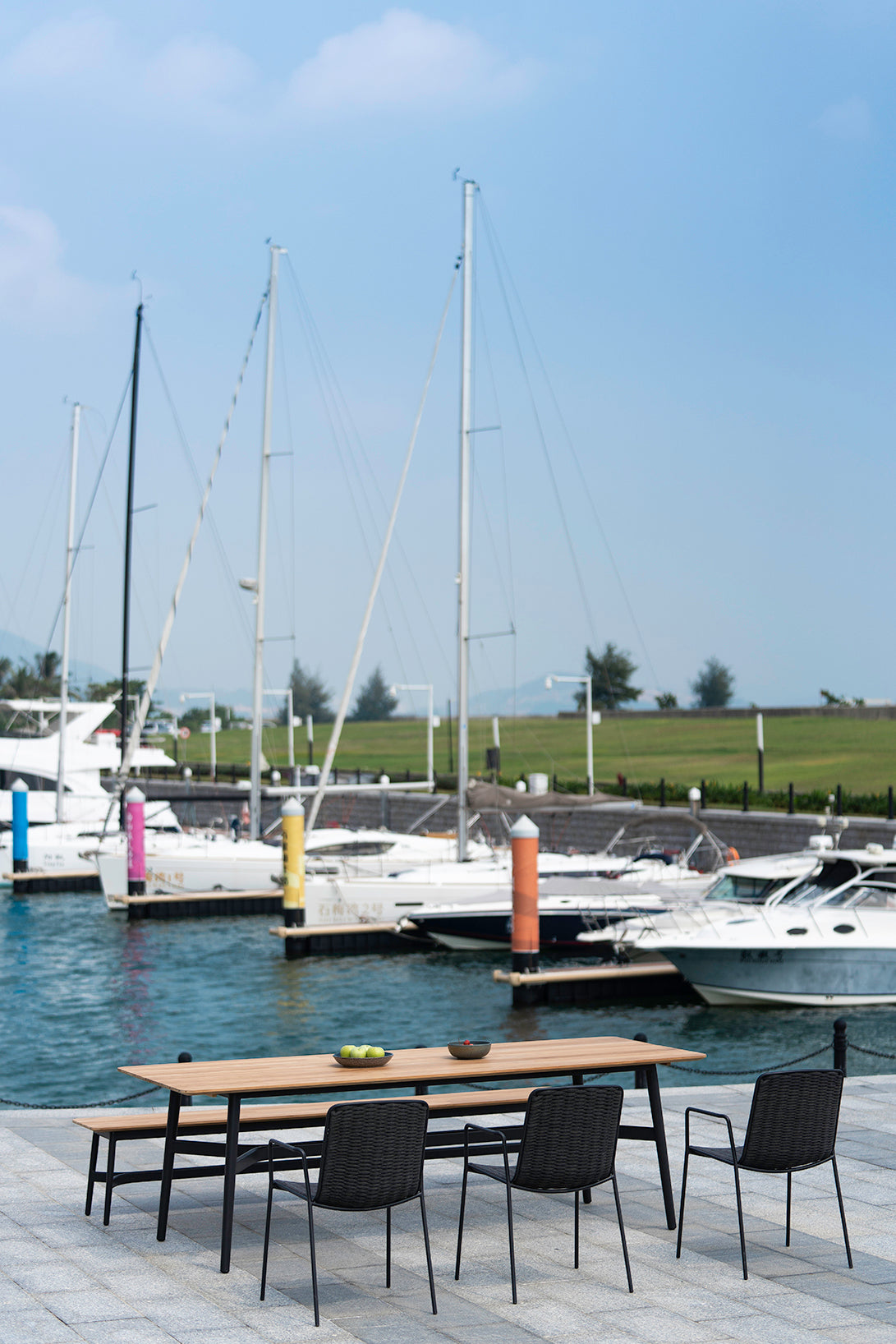 Bella is a comfortable and light outdoor collection that makes meetings even more pleasant. Thanks to its colors and geometry, it blends in with the environment. Its minimalist design doesn’t take away its resistance. The metal tube structure and the braiding of the seat provide great resistance, allowing their intensive use.