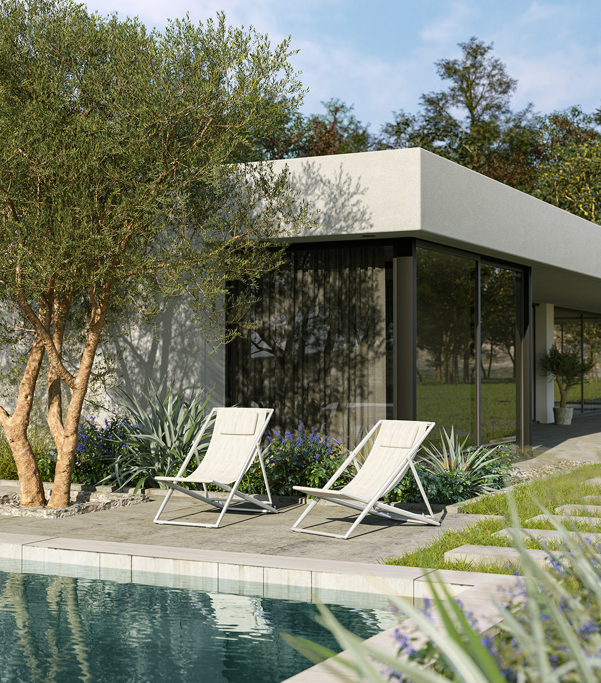 Frame: aluminium with Tiger powder coating and Textilene with Serge Ferrari Batyline