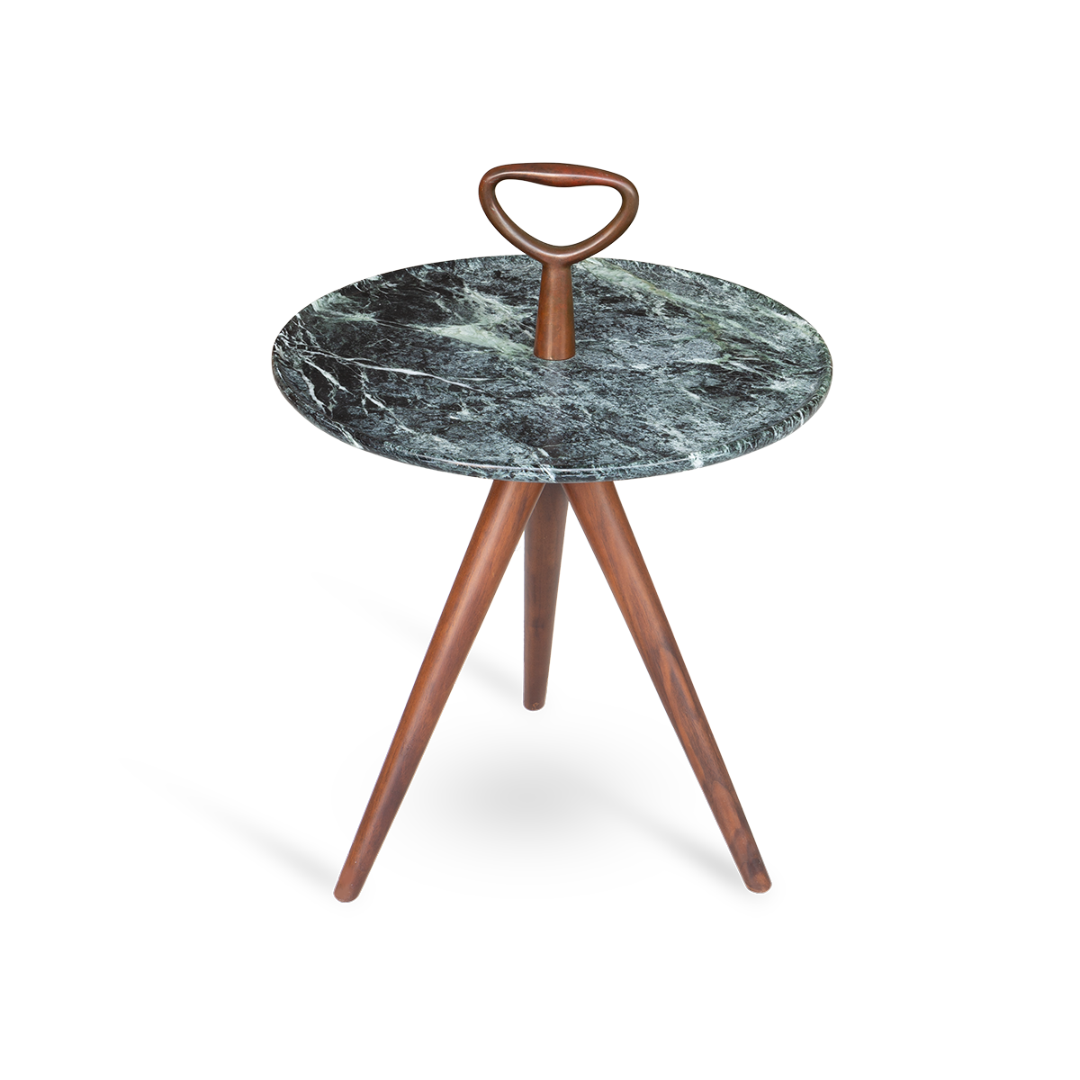 Featuring a uniquely designed bronze handle, reinforced marble tabletop, and solid American Walnut, the side table is an illustration of luxe and simplicity.