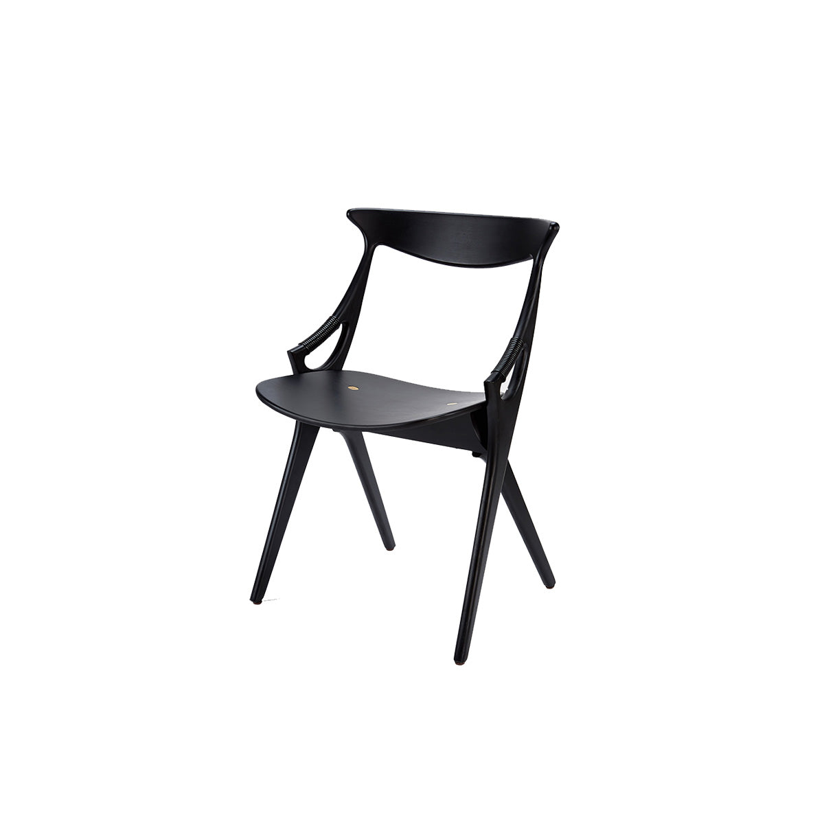 A very unique approach for a four legged chair - taking full advantage the strength of plywood held up by a small hidden metal bar that enabled to cross the legs. A light and easy dining / cafe chair.
