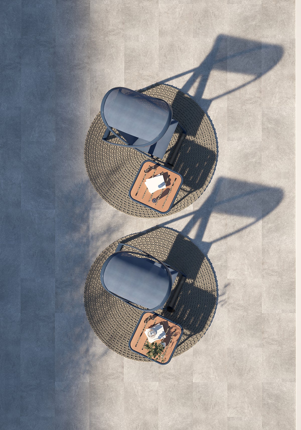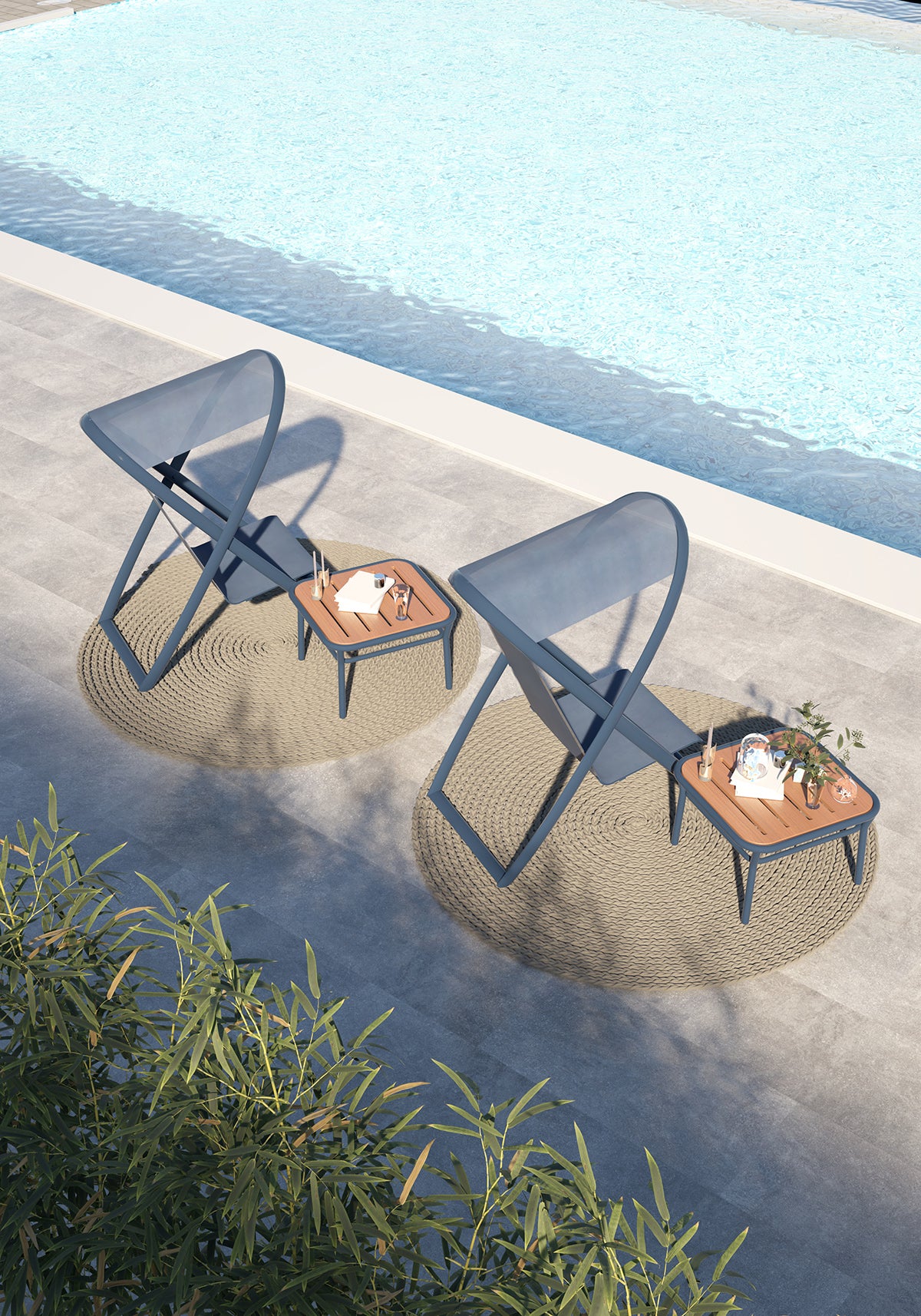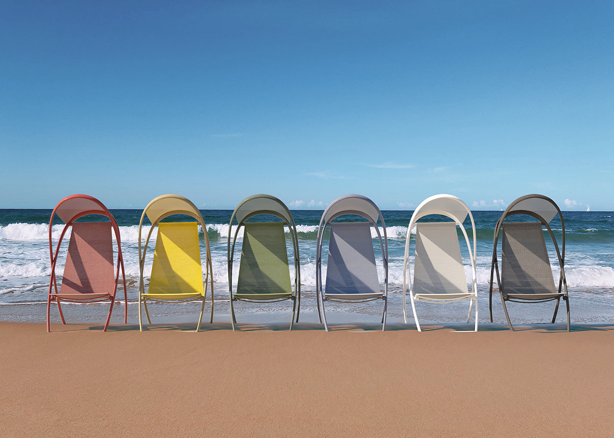 Frame: aluminium with Tiger powder coating. Textilene seat and canopy with Serge Ferrari Batyline