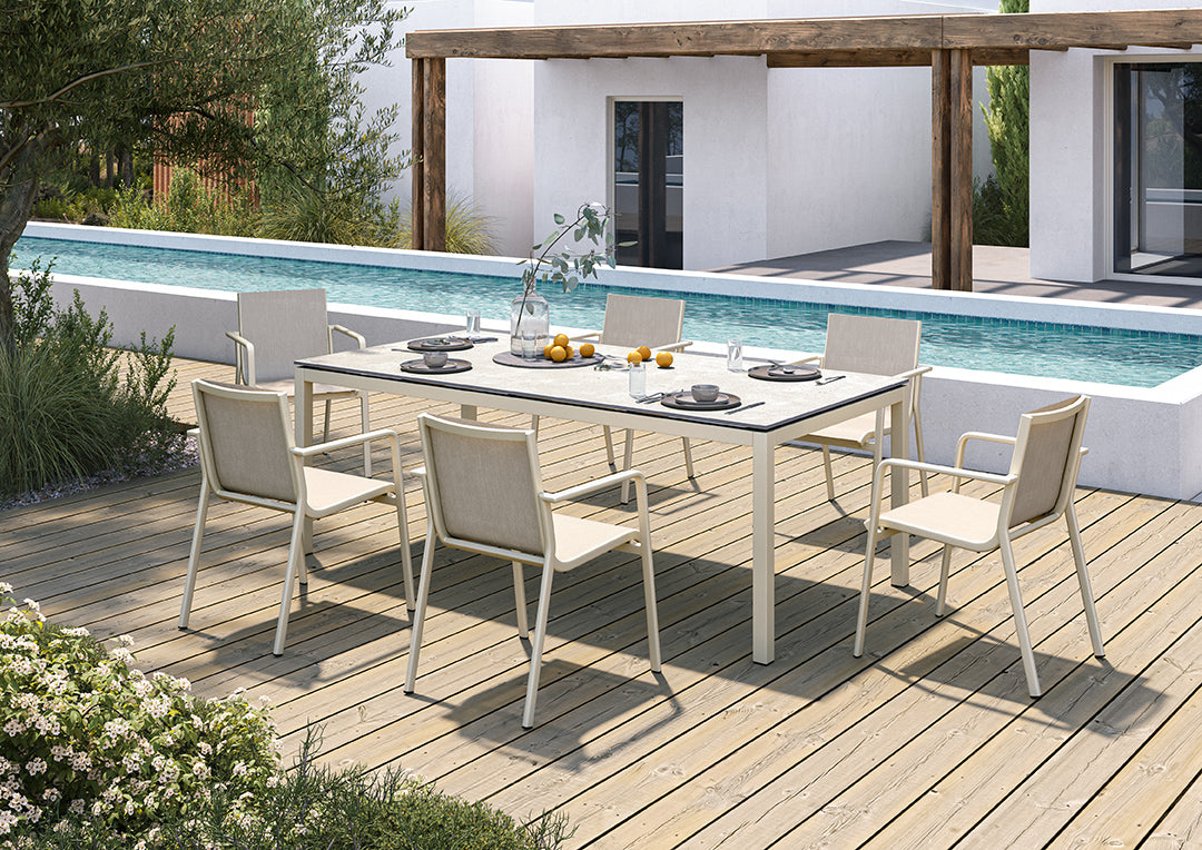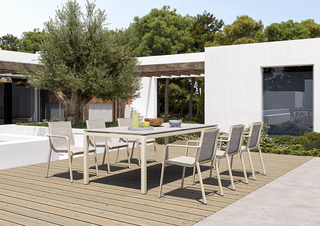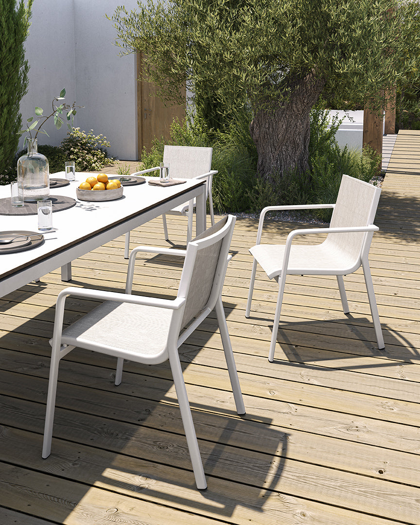 Heather is an outdoor collection that will accompany you in the best moments: chatting with friends, enjoying a meal outdoors, barbecues with family or relaxing on the deck chair by the pool... It is a dynamic design, with soft curves that make it very cozy for outdoor lounging.