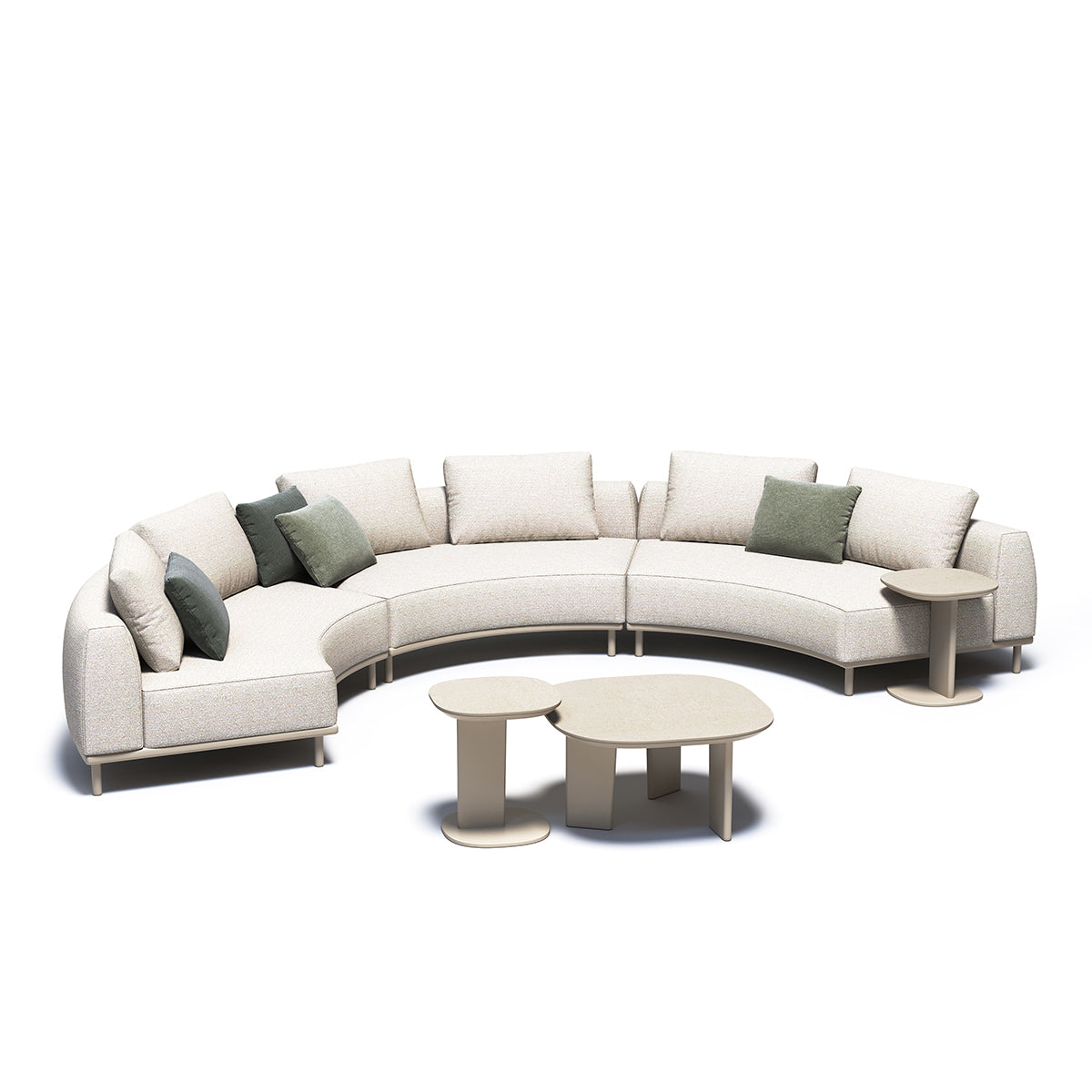 The Isola collection draws upon the inherent geometry of island formations—autonomous landforms shaped by shifting tides, prevailing currents and the quiet erosion of time. Each module is conceived as an independent element, strong in its own identity, yet purposefully designed to interlock and expand, forming larger topographies of outdoor inhabitation.