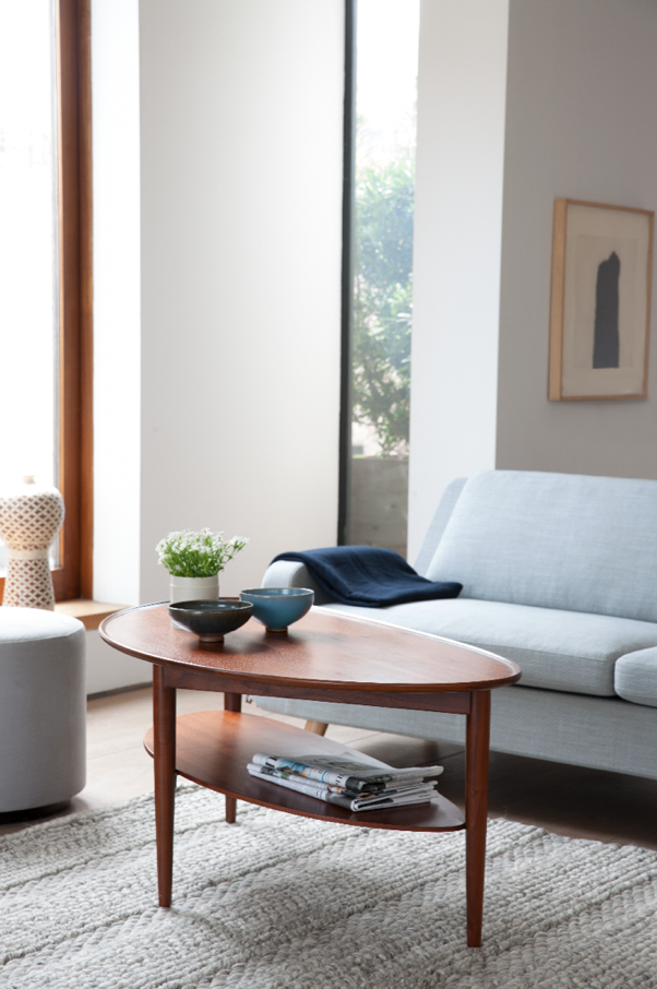 Scandinavian Modernism was very inspired by "free shaped" artworks like the ones of Jean Arp. This kidney shaped table is no exception.