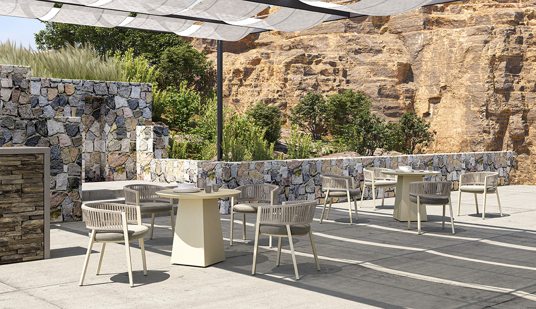 Designed by Benta Wiley, the Mia collection boasts a rich aesthetic, blending various materials and techniques.The featured braiding of the back offers an elegant yet minimalist aesthetic. The Mia seating collection is complimented by the Mia table, a robust range with an even stronger personality.