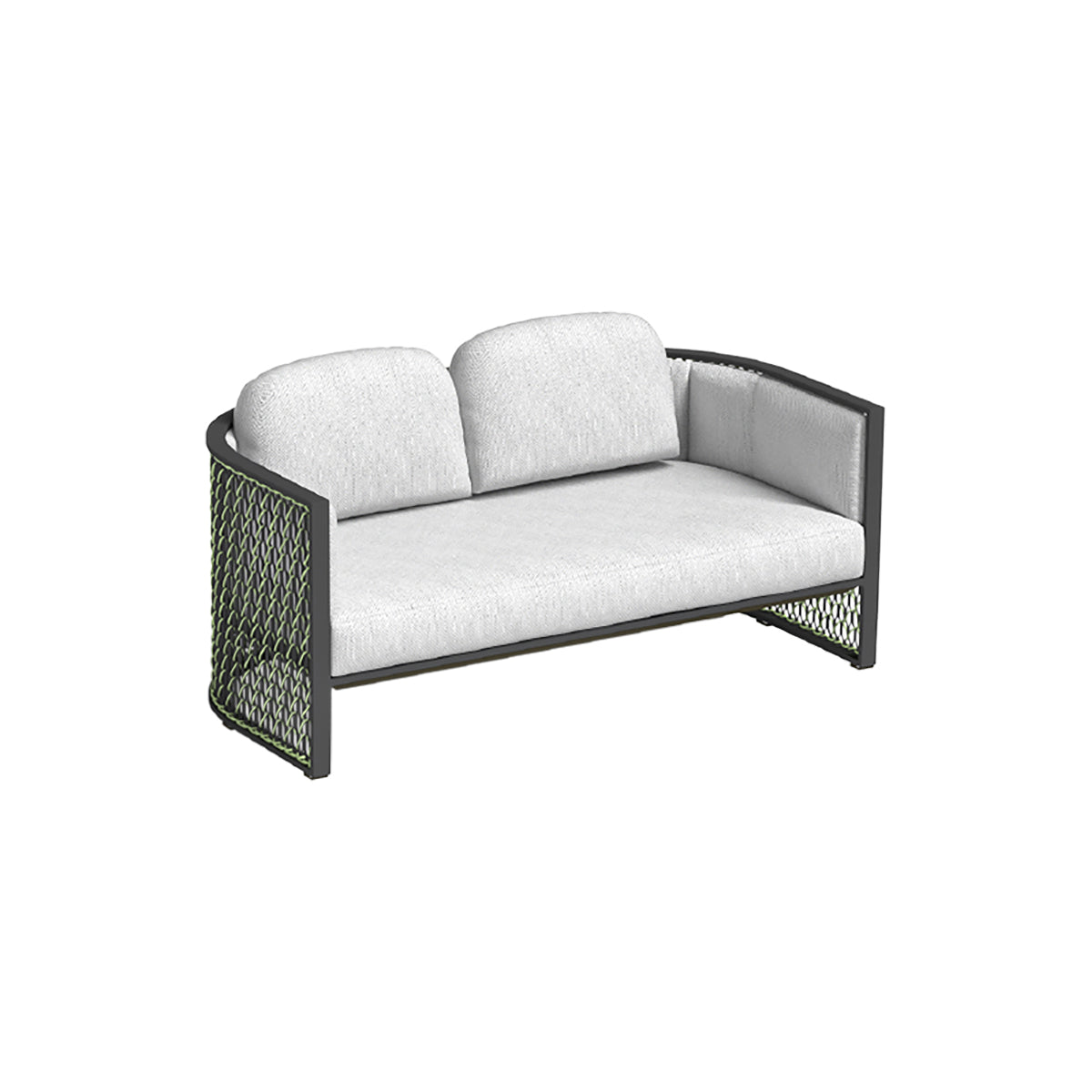 Frame: aluminium with Tiger powder coating and aluminum mesh with woven rope + 1 seat cushion, plus two back and scatter cushions