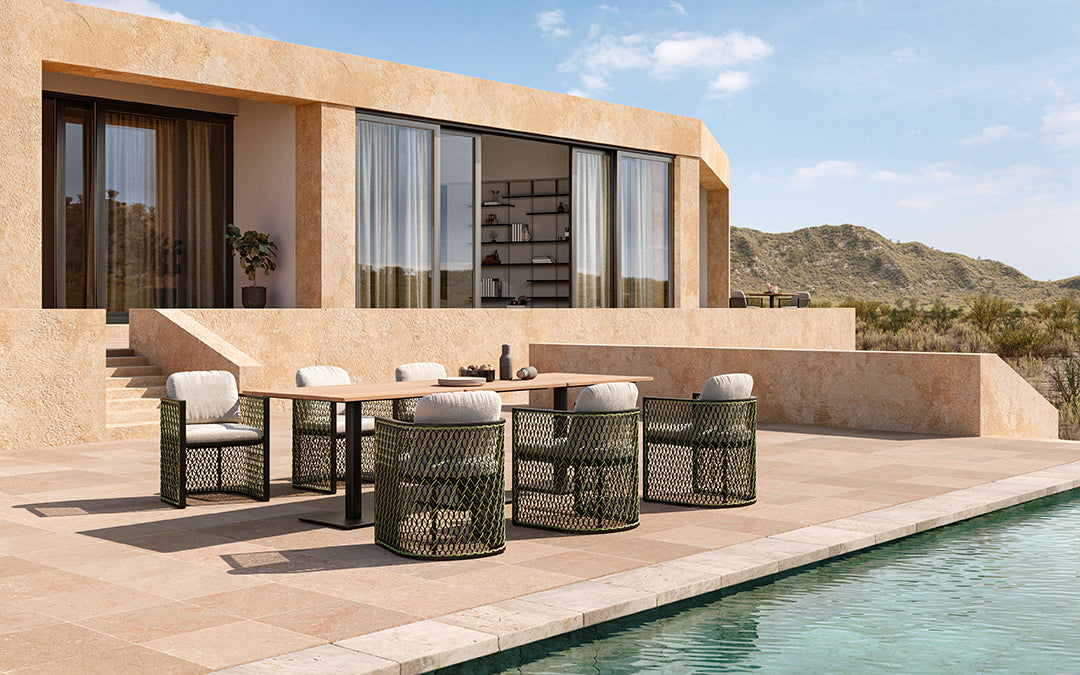Featuring a hand-woven and aluminium mesh, the Nido collection is inspired by the seemingly haphazard yet structurally sound construction of a bird's nest, created to nurture you in comfort.