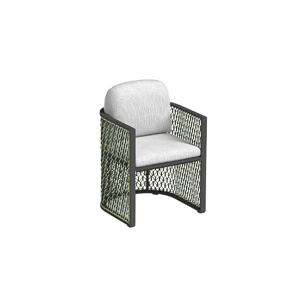 Frame: aluminium with Tiger powder coating and aluminum mesh with woven rope + 1 seat cushion and back cushion