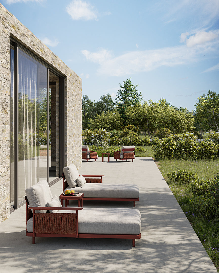 Frame: aluminium with Tiger powder coating and woven rope + 1 seat cushion and 1 back cushion