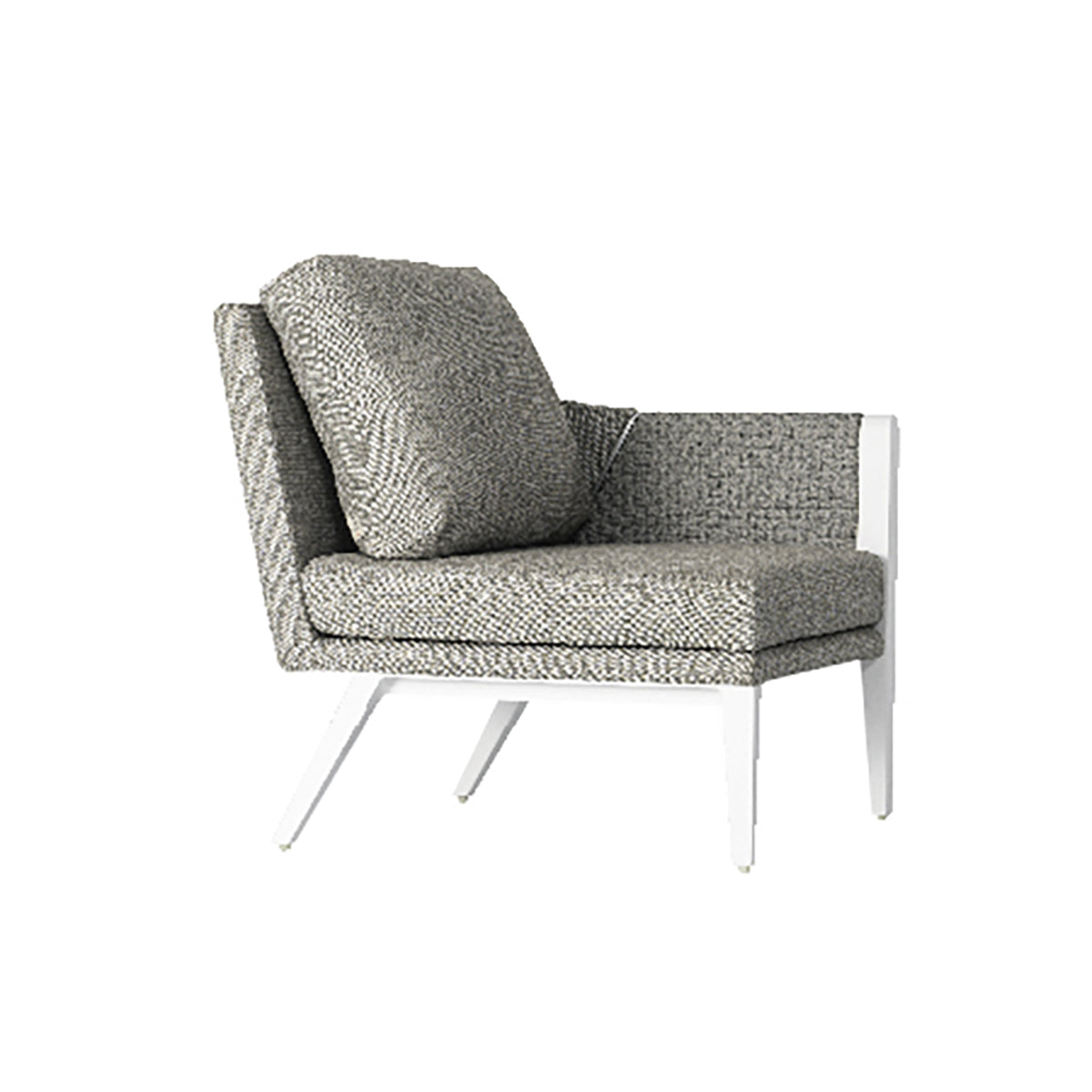 "Frame: aluminium #6063 with Tiger powder coating & woven ropes 1 seat cushion & 1 back cushion, made of QDF, water repellent interlining and outdoor fabric"