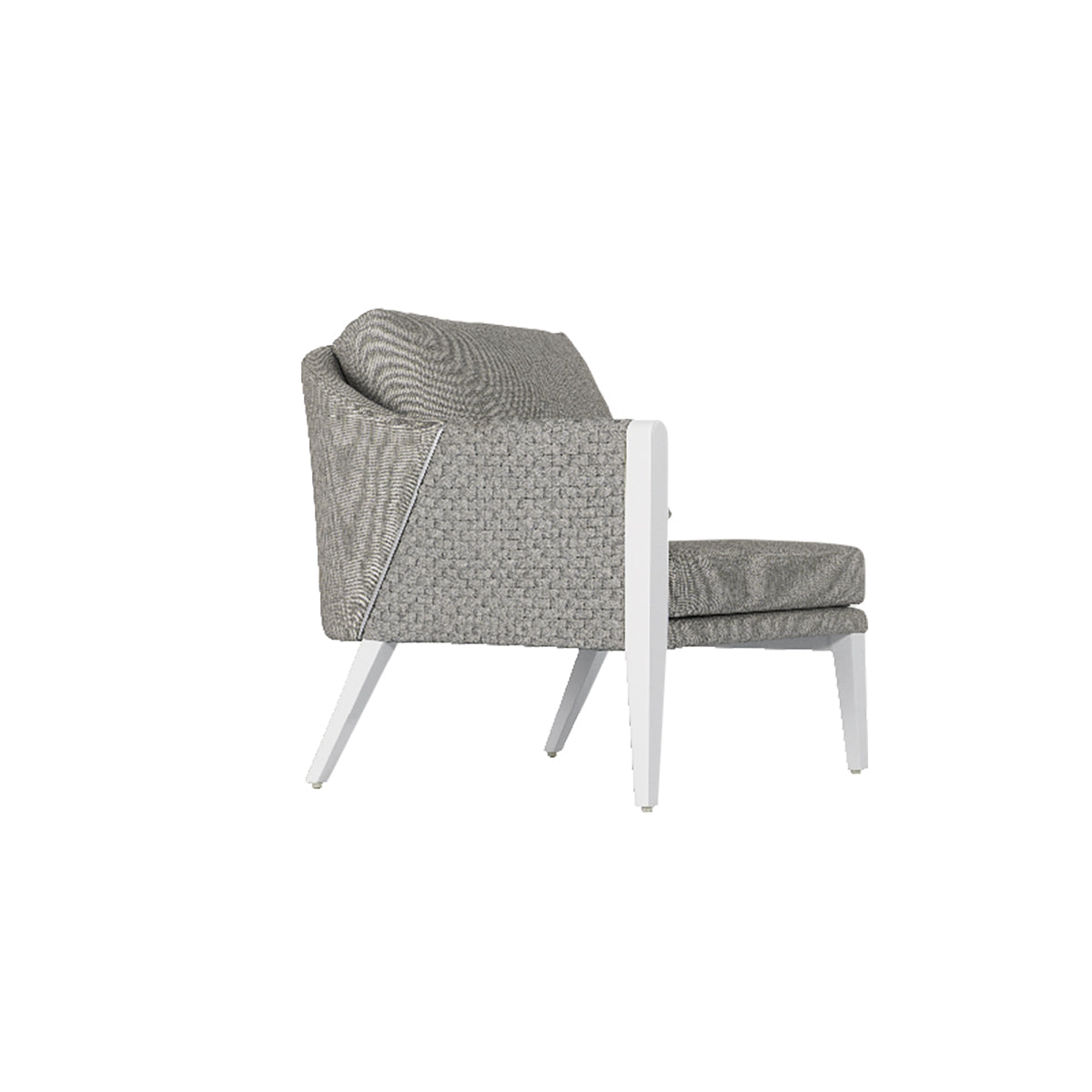 Frame: aluminium #6063 with Tiger powder coating & woven ropes 1 seat cushion + 1 back cushion, made of QDF, water repellent interlining and outdoor fabric